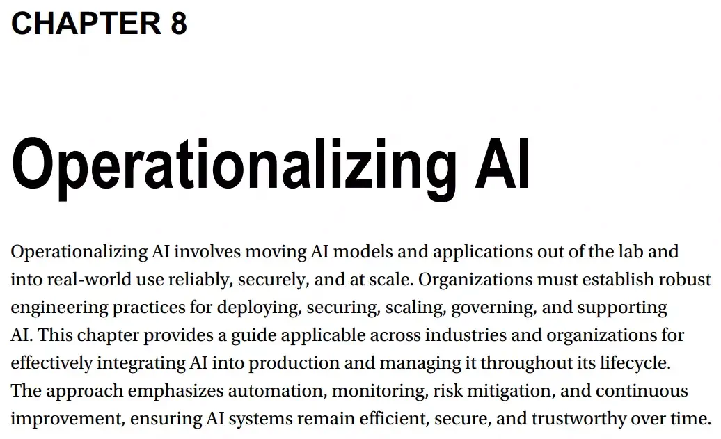 - عملیاتیسازی و مقیاسدهی برنامههای هوش مصنوعی برای تضمین استفاده تابآور در محیط تولید و تسهیل بهبود مستمر.