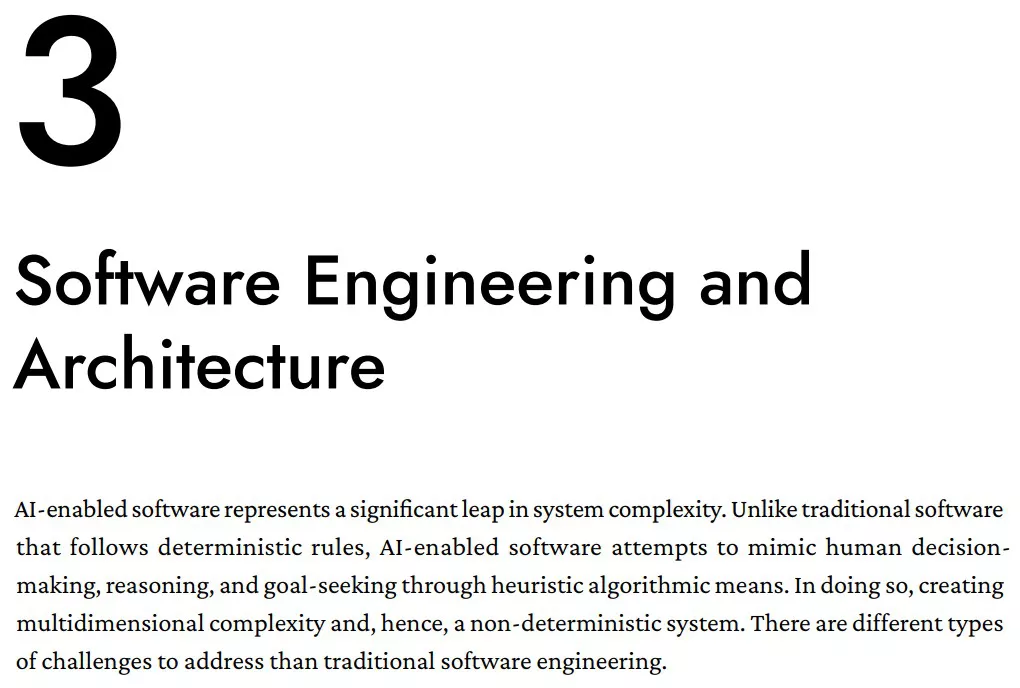 ساخت نرمافزار پیچیده چالشی است که نیازمند تلاشی منظم و روشمند برای مهندسی است. بسیاری از اوقات، وقتی سامانههای نرمافزاری پیچیده با شکست مواجه میشوند، معمولاً به این دلیل است که معماری سامانه دچار نقص شده، نه یک جزئیات الگوریتمی یا پیادهسازی خاص. بهترین شیوهها و درسهای آموخته شده برای ساخت نرمافزارهای پیچیده وجود دارد. همچنین منابع فراوانی در مورد نظریه و پیادهسازی فناوریهای هوش مصنوعی موجود است.