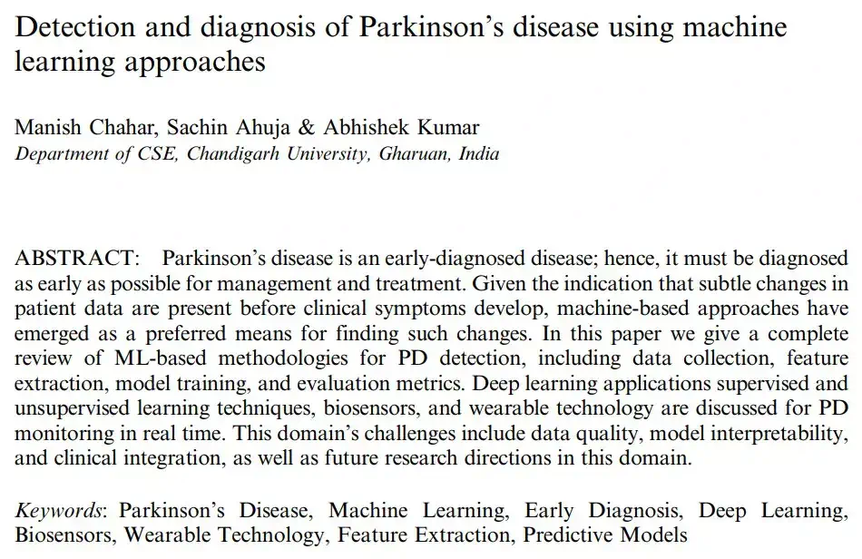 - Research paper on detection and diagnosis of Parkinson’s disease using machine learning approaches