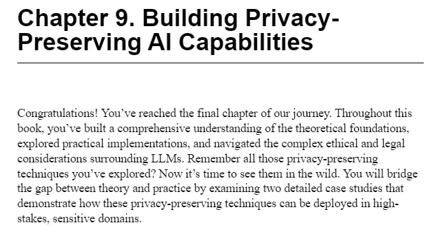 - chapter 9. Building Privacy-Preserving AI Capabilities