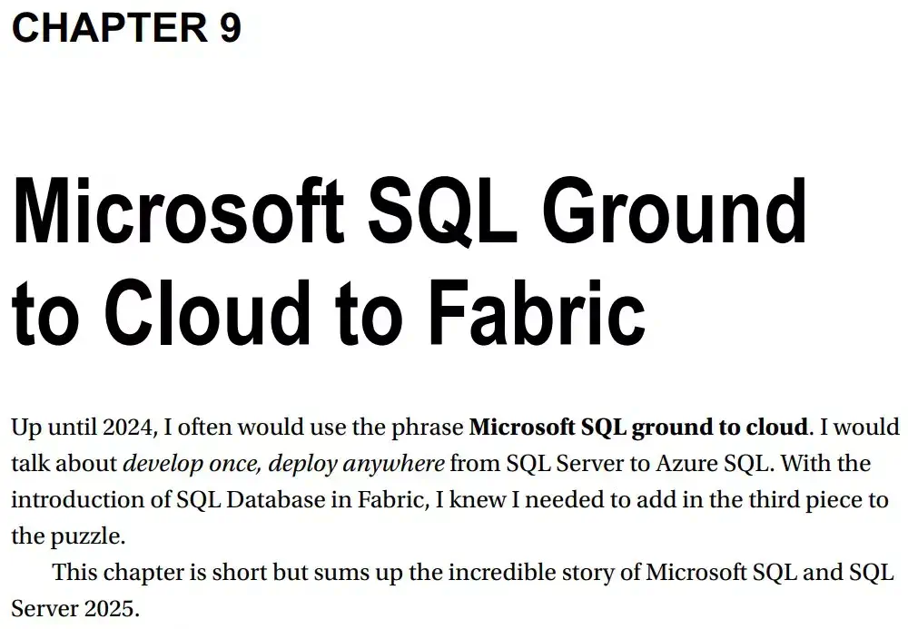 - Chapter 9: Microsoft SQL Ground to Cloud to Fabric